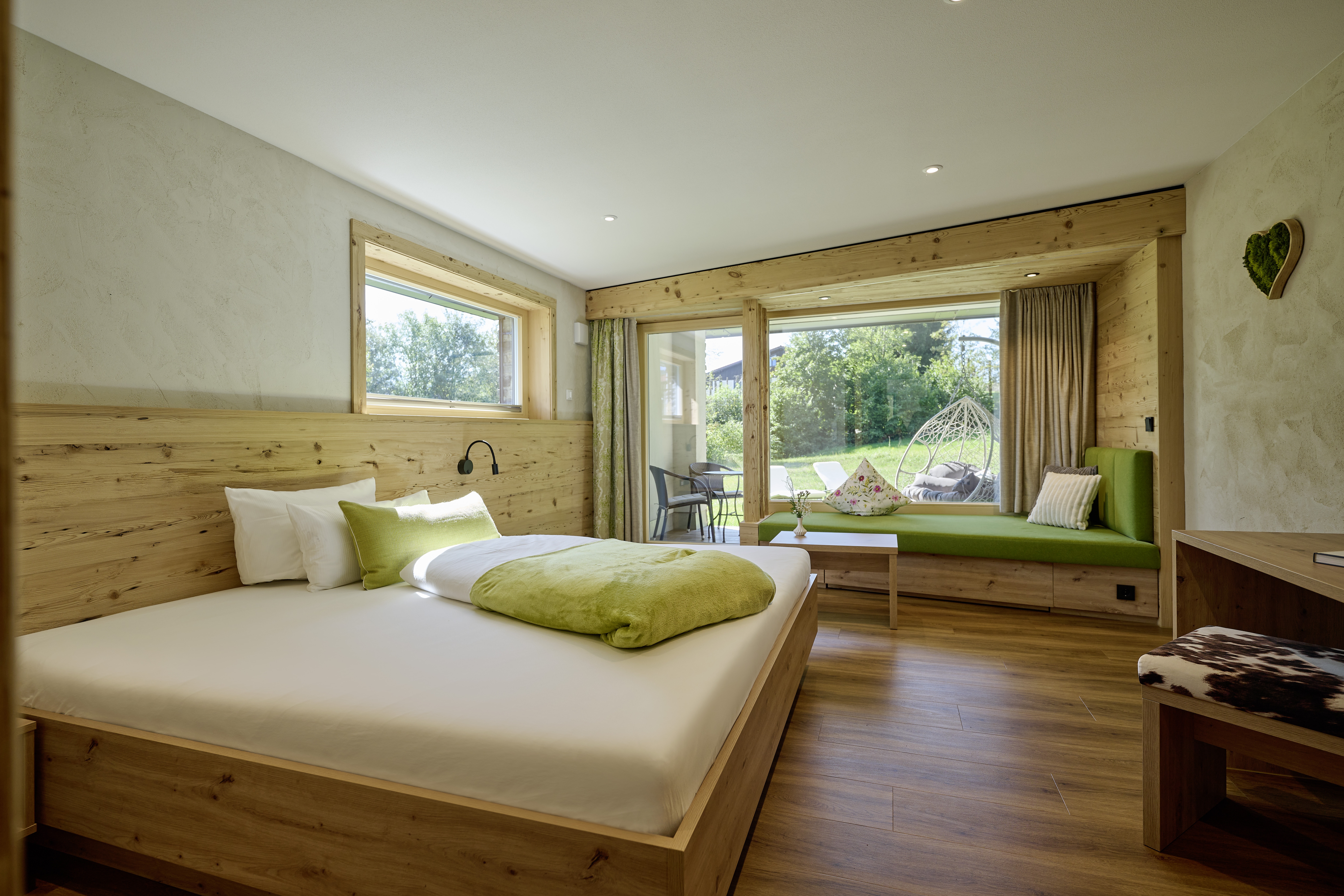 . Hier verwöhnt Sie die Sonne also den ganzen Tag lang und Sie haben direkten Zugang zum traumhaften Hotelpark. Also genau das Richtige für alle Natur-Liebhaber.